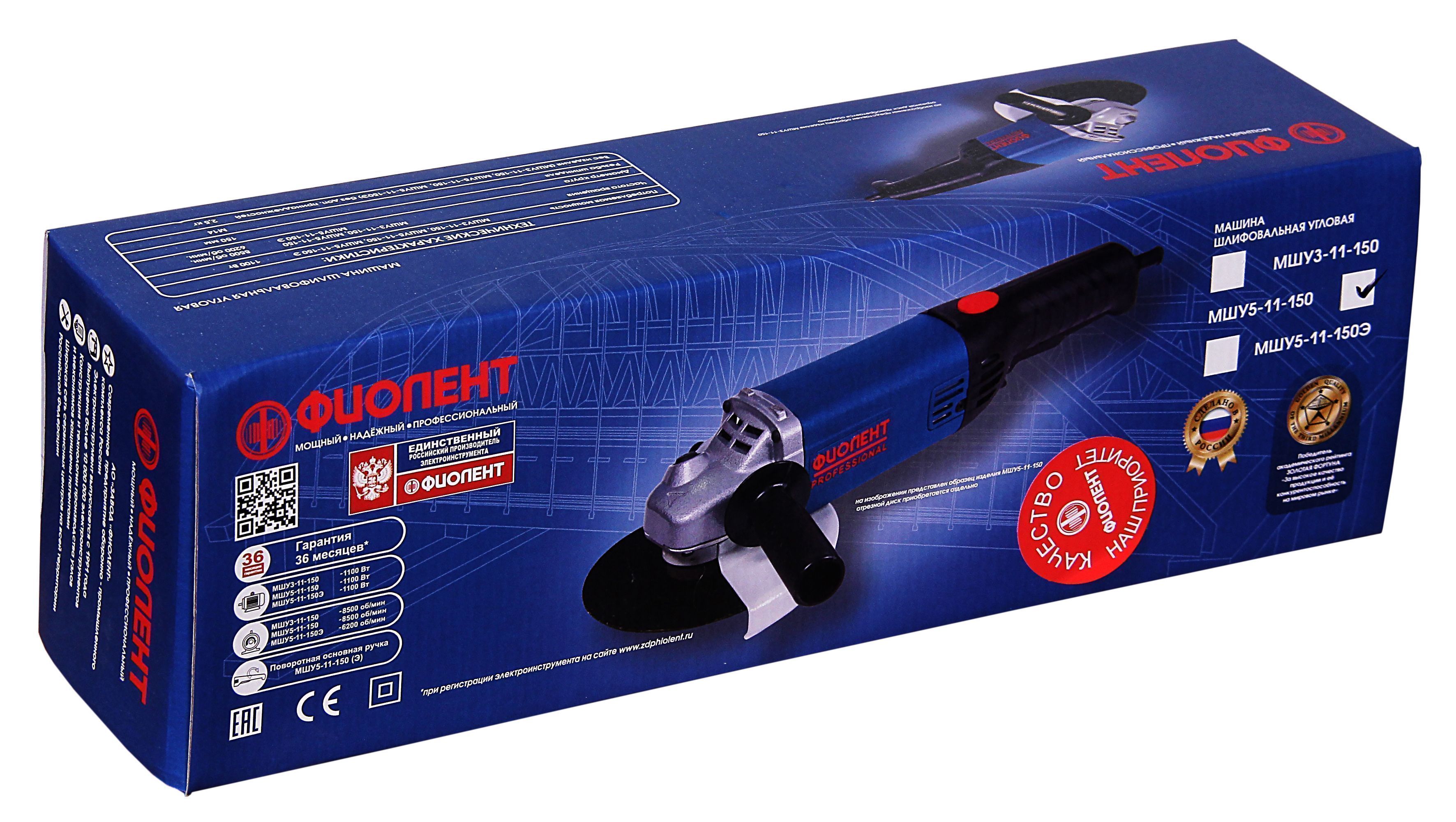 Углошлифовальная машина Фиолент МШУ5-11-150 в продаже по цене 4 957 руб. в Интернет-магазине Проф-инструмент с доставкой в Улан-Удэ и Бурятии. Звоните по телефону +8 (800) 302-10-51.