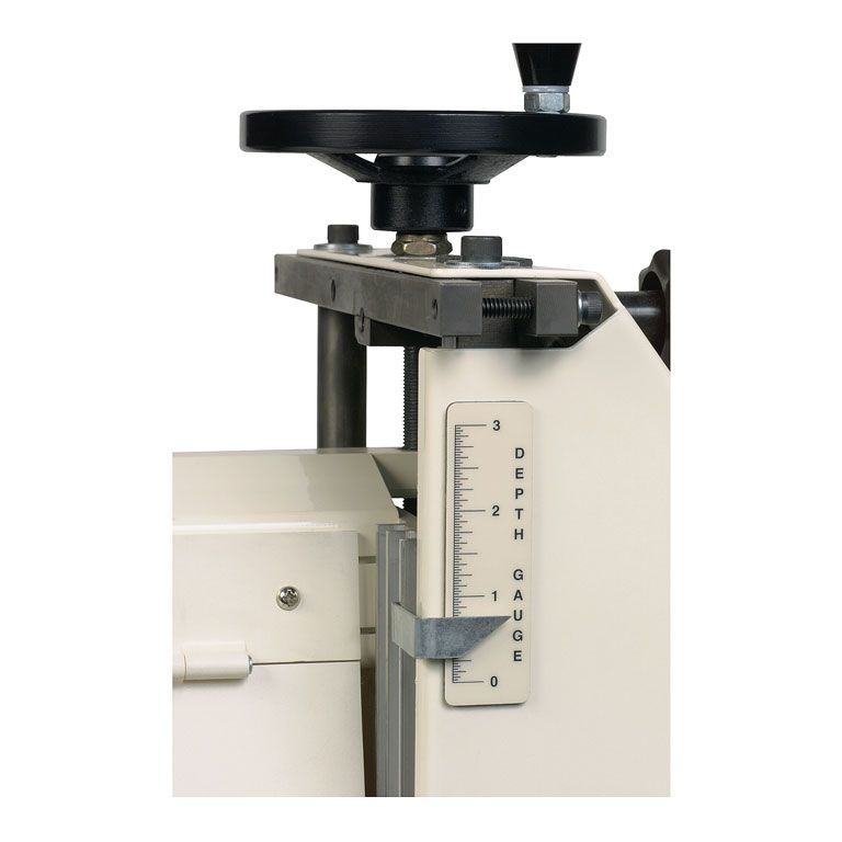 Вал расположен консольно, что позволяет обрабатывать детали, ширина которых превышает его длину. Маховик сверху корпуса отвечает за регулировку просвета до транспортерной ленты (настраивается в зависимости от толщины заготовок). Подача деталей производится с помощью транспортерной ленты, скорость ее движения плавно регулируется в диапазоне от 0 до 3 м/мин.