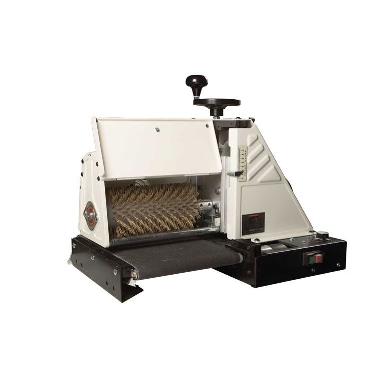 Докупив опционный вал и щетки, станок можно переоборудовать в так называемый брашировальный. Он позволяет производить текстурирование дерева с различными эффектами. Важно, что станок позволяет добиться одинаковой глубины обработки (повторяемости) и, кроме того, гораздо эффективнее популярного ручного электроинструмента, предназначенного для решения схожих задач.