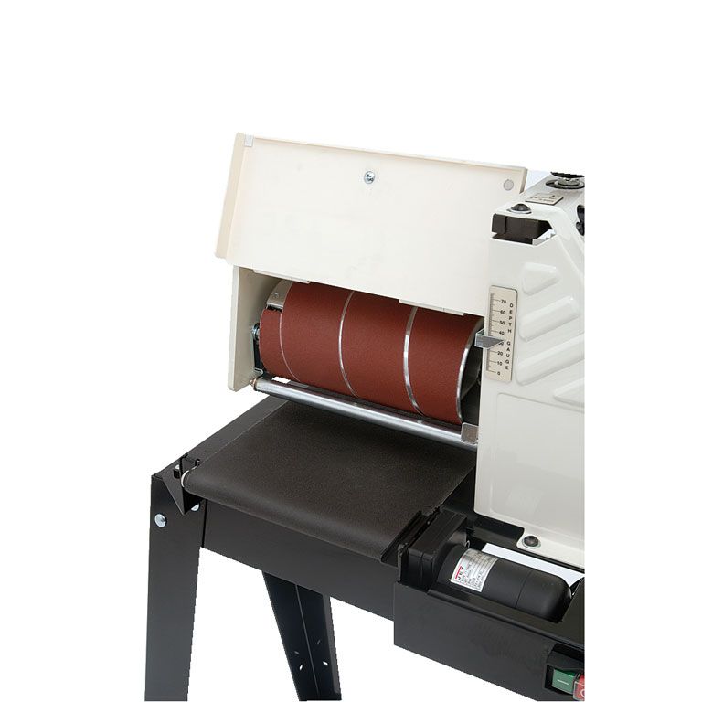 Jet 10-20 Plus универсальный барабанно- и щеточно-шлифовальный станок компактного класса. Вал и щетки для браширования приобретают за отдельную плату, в стандартное оснащение входит барабан для намотки абразивной ленты. В зависимости от ее зернистости станок может выполнять самые разные работы, начиная с калибрования заготовок из дерева и заканчивая их финишным шлифованием. Подходящие полосы можно нарезать самостоятельно, фиксируются они в специальных зажимах без использования клея или «липучек». Запатентованная конструкция с пружиной упрощает плотную равномерную намотку и обеспечивает автоматическое натяжение, как в начале работы, так и по мере растяжения ленты.