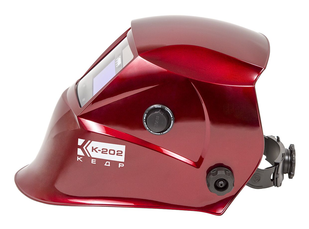 Маска сварщика КЕДР К-202, красная, новая высокотехнологичная продукция, которая использует технологию спектральной фильтрации. Маска с системой изменения степени затемнения от 9DIN до 13DIN и реальным временем включения 0,00003 сек.