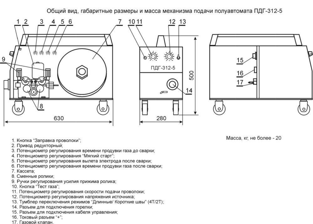 Обеспечивает стабилизацию скорости подачи сварочной проволоки и обратную связь по напряжению на двигателе подачи сварочной проволоки, что позволяет производить качественную сварку на расстоянии до 30 метров от сварочного источника;