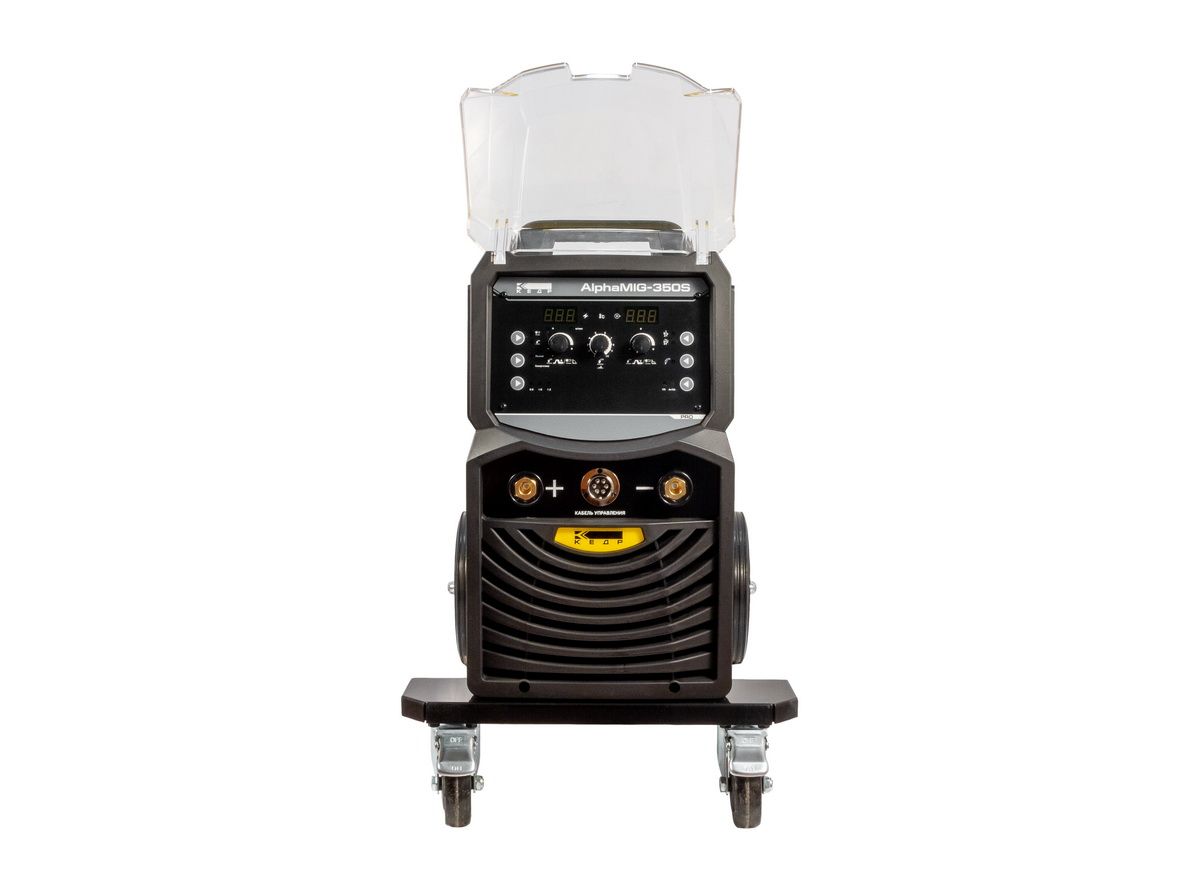 КЕДР AlphaMIG-350S - это промышленный полуавтомат для производительной и высококачественной сварки, работающий в паре с компактным и мощным 4-роликовым подающим устройством.